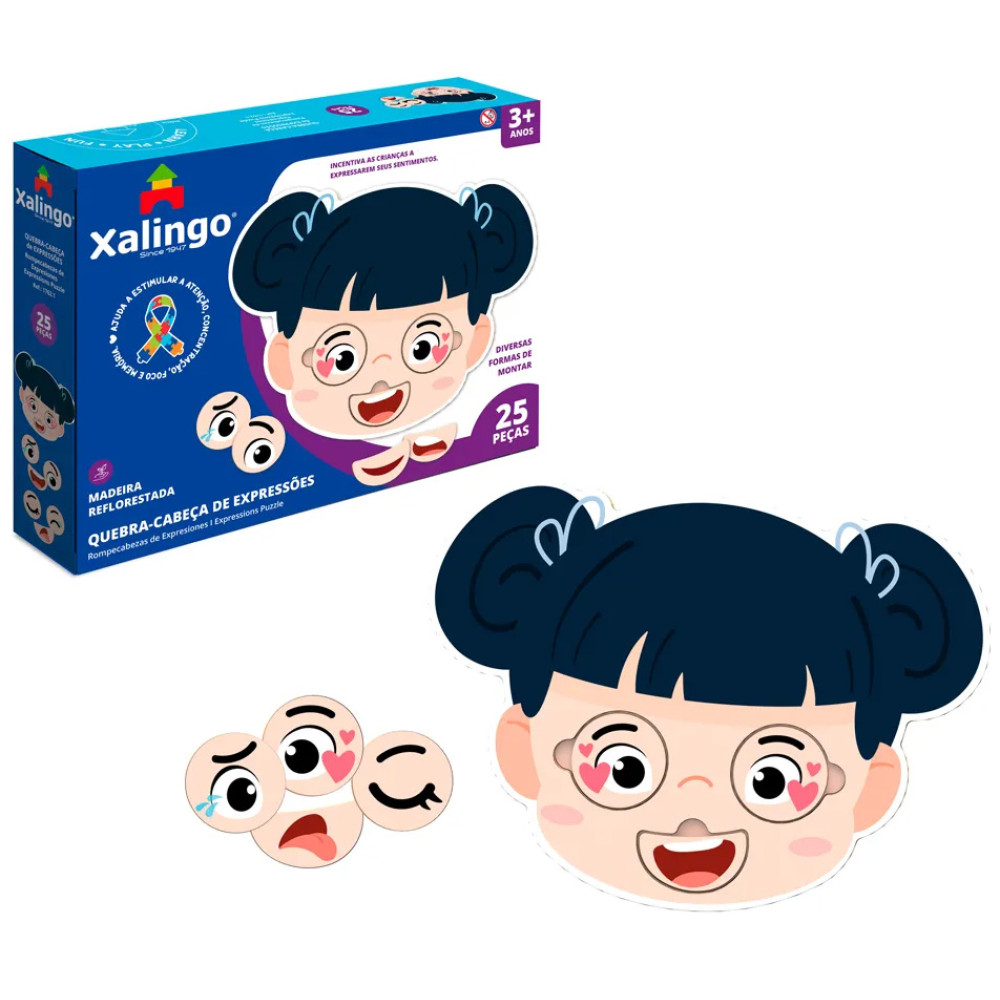 O Quebra-cabeça de Encaixe Expressões II da Xalingo é muito mais que um jogo: é uma ferramenta lúdica que incentiva as crianças a explorarem e expressarem seus sentimentos e emoções de forma divertida. Através da combinação de diferentes peças, a criança pode montar diversos rostos, identificando o que cada expressão representa.