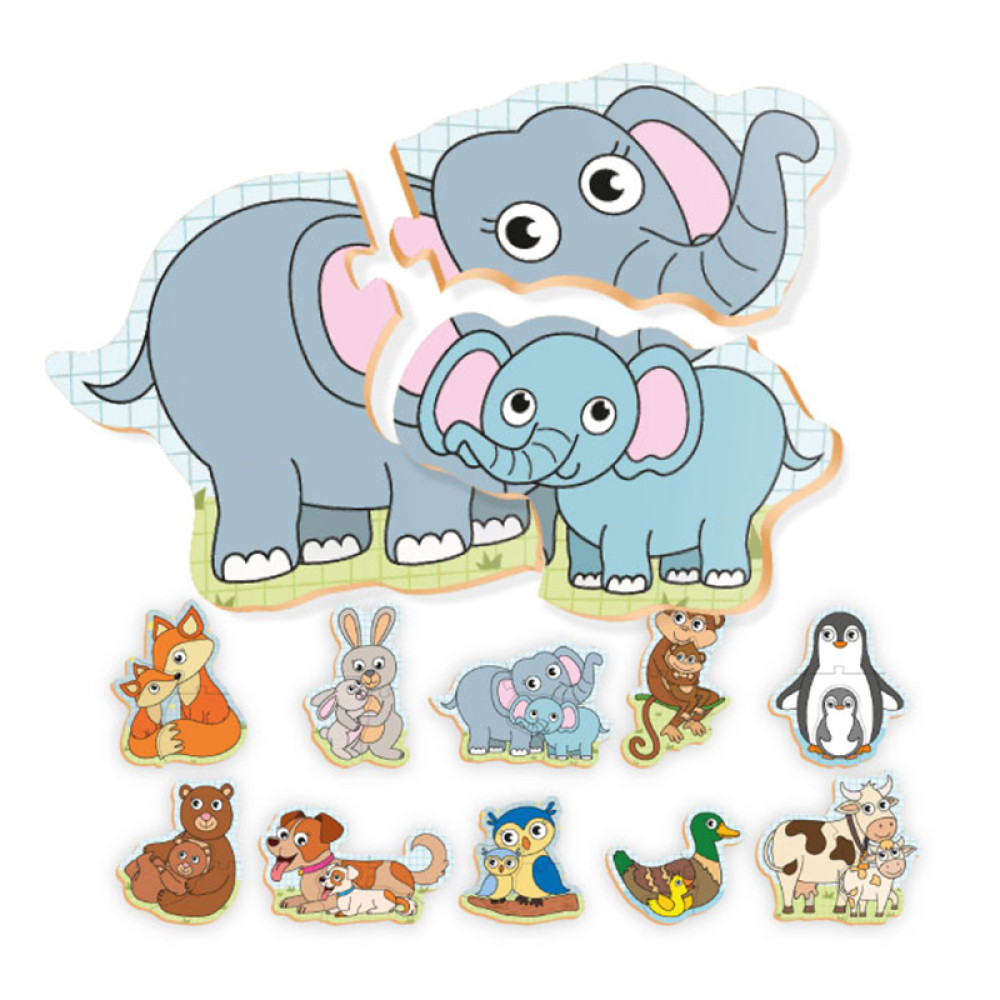 Quebra-Cabeça Mamãe e Filhote Jogo Educativo De Madeira Associação De Animais 20 Peças