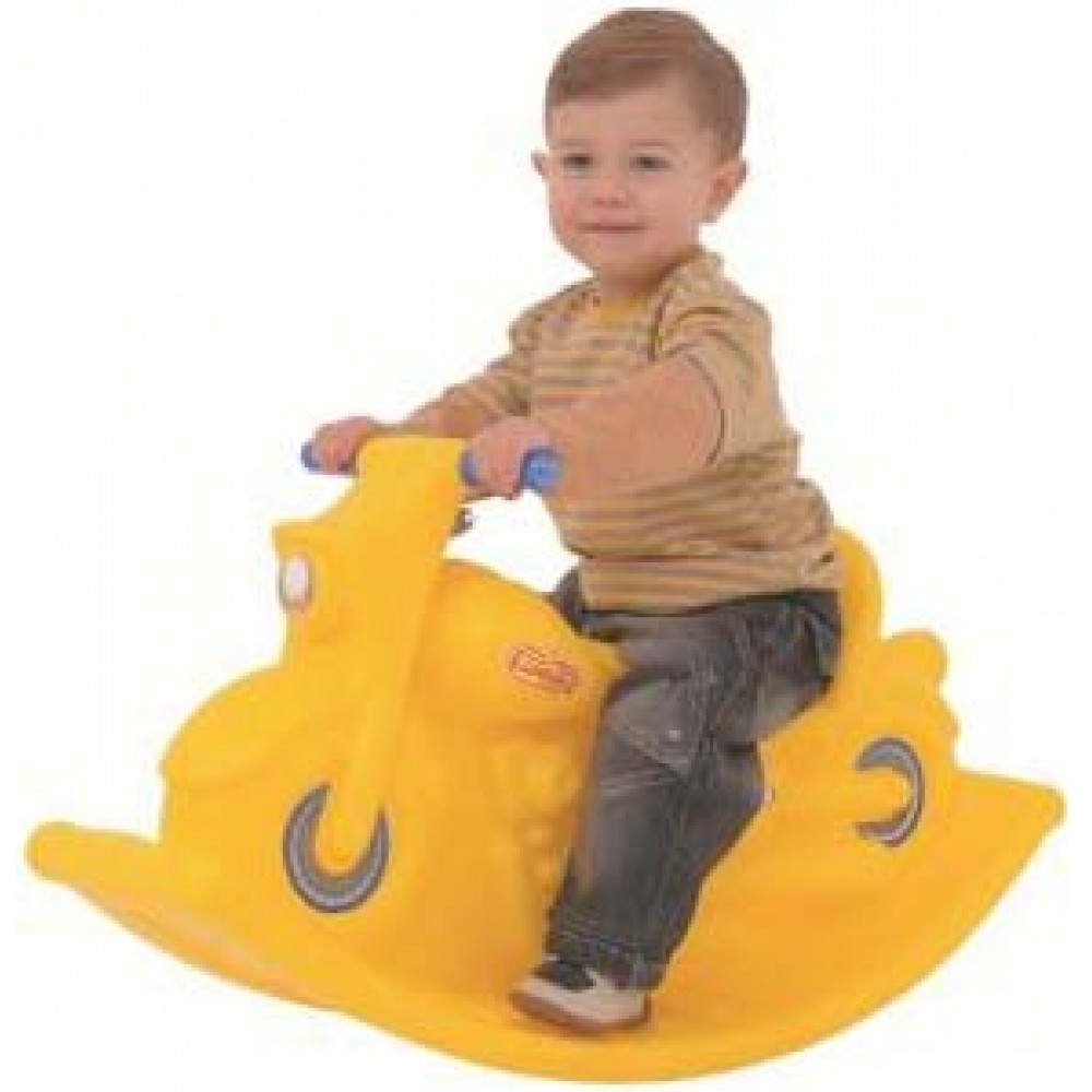 MOTO BALANÇO. A partir de 1 ano. Medidas: 81,5Cx26,5Lx42A cm. Balanço com tema de moto. Para 1 criança. Base curva. Assento anatômico, com apoio para as costas. Apoio antiderrapante para os pés. Adesivos. Chave. Punhos grandes. Suporta até 30kg. Material: Polietileno pigmentado (PBLD). Marca Xalingo