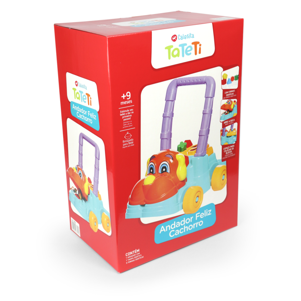 O Andador Feliz Cachorro da Tateti é o parceiro ideal para duas fases importantes do desenvolvimento do bebê: o aprendizado cognitivo e os primeiros passos. Sendo um brinquedo 2 em 1, ele funciona tanto como um andador seguro quanto como um centro de atividades completo.