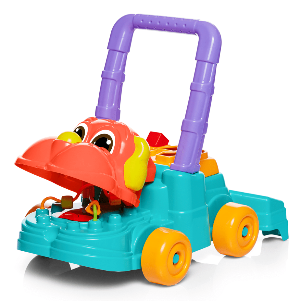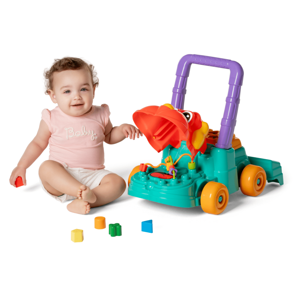 Com um design encantador de cachorrinho, este andador estimula a coordenação motora grossa, oferecendo apoio para a criança ficar em pé e caminhar. Ao mesmo tempo, sua parte frontal possui uma tampa didática e pecinhas de encaixar coloridas que promovem o desenvolvimento cognitivo, ensinando noções de cores, formas e tamanhos.