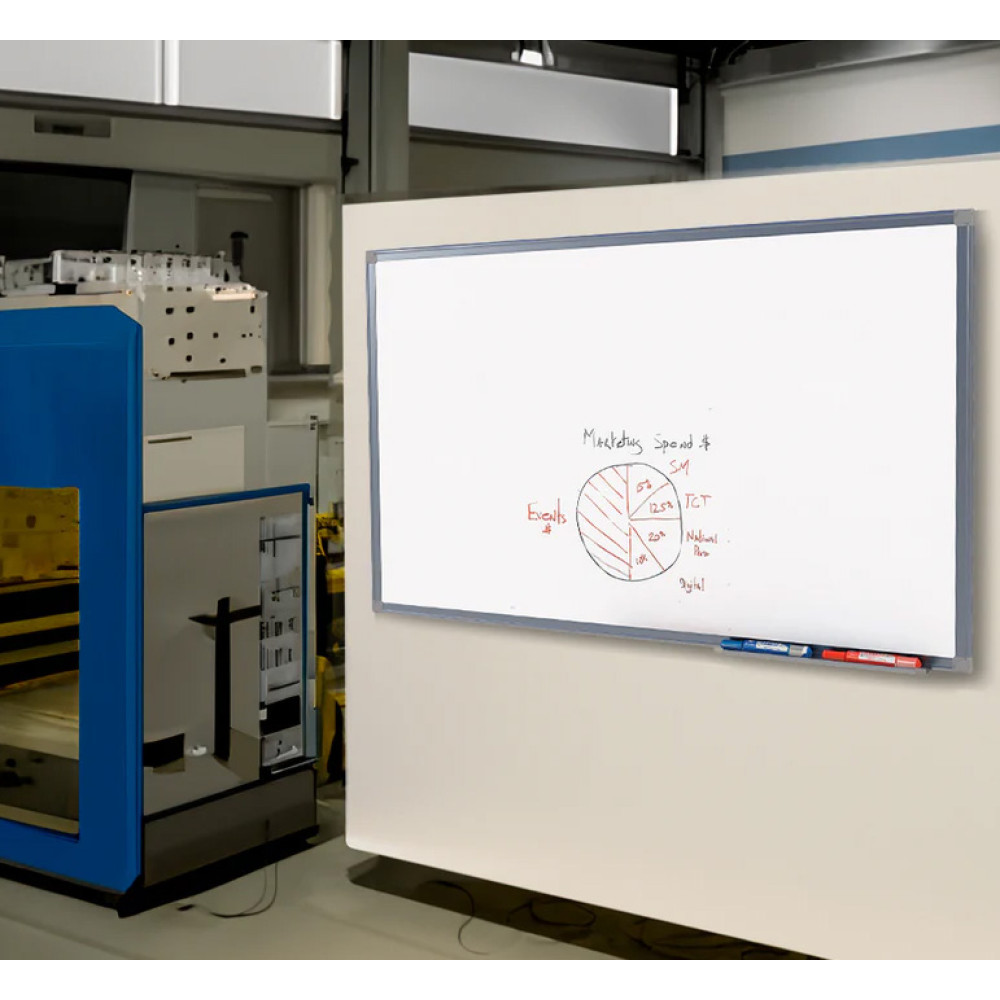 TECNOLOGIA DE ESCRITA SUPERIOR: A superfície é produzida com pintura 100% Ultravioleta (UV) de alto brilho, garantindo uma gramatura mínima de 95 grs/m². Esta tecnologia exclusiva permite que o marcador deslize com facilidade, proporcionando uma leitura clara e um apagamento a seco impecável, sem deixar manchas ou o efeito "fantasma".