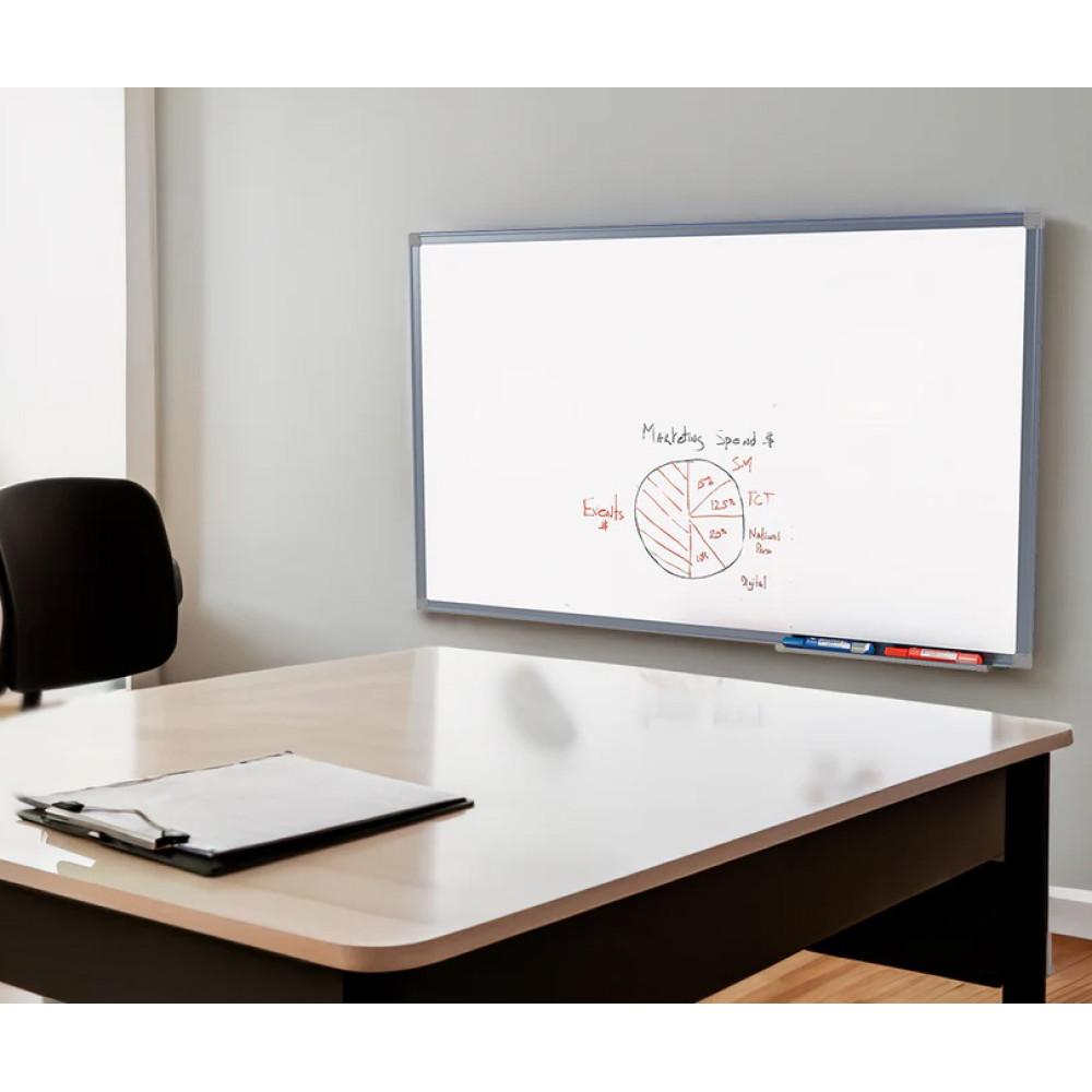 Potencialize a comunicação e a organização em seus ambientes com o Kit de 02 Quadros Brancos de alta performance. Com 2 metros de largura, estas lousas oferecem o espaço ideal para planejamentos estratégicos, cronogramas de projetos e aulas detalhadas, unindo design moderno e máxima resistência.
